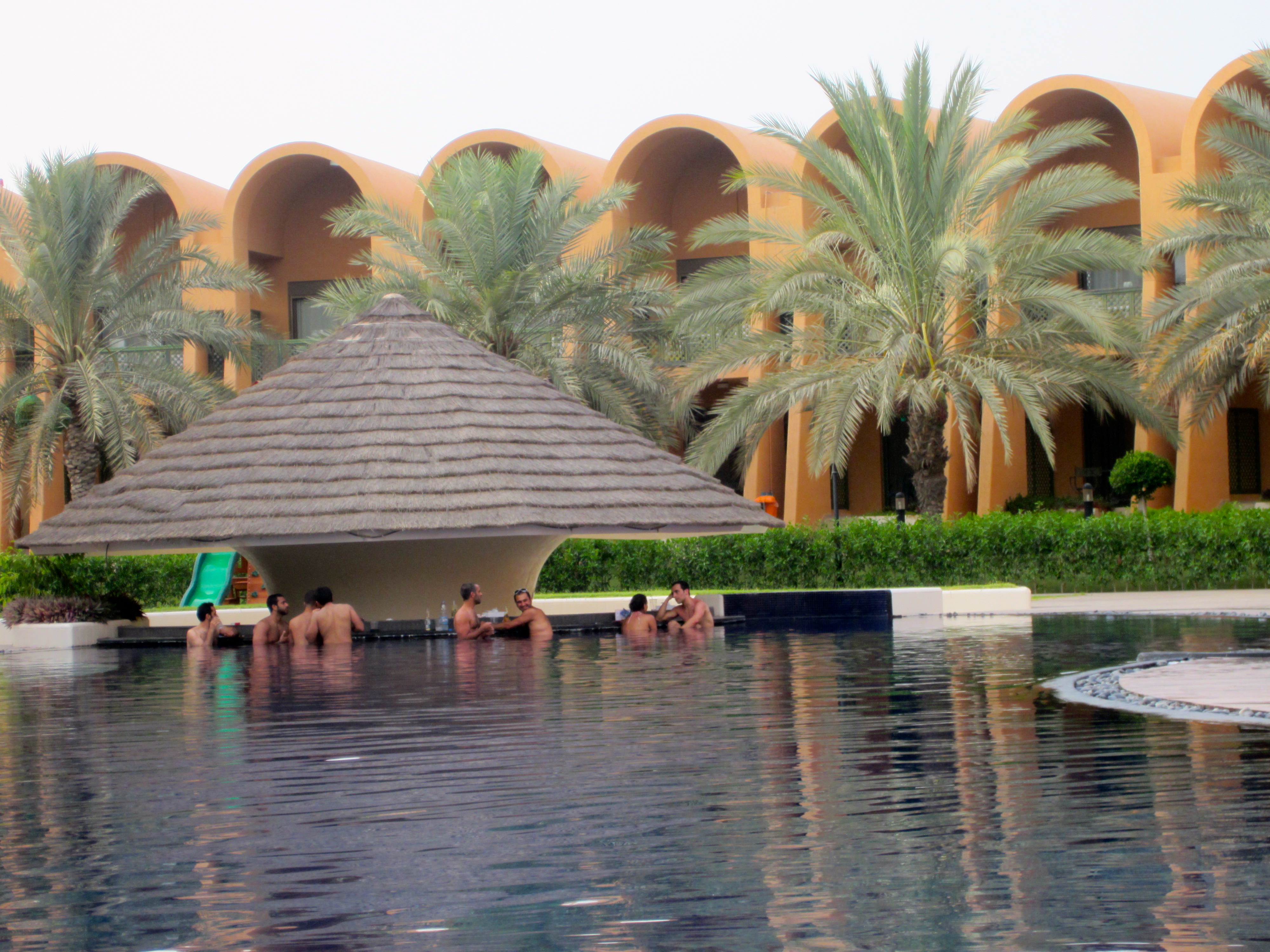 in this conservative, muslim country …. the kings people were playing LOUD dirty american rap and wearing the teeny-tiniest bathing suits i’ve seen … they were keeping the bartender at the swim up bar so busy he had to call for backup. by the late afternoon there were 3 bartenders working … we stayed until the sun went down.