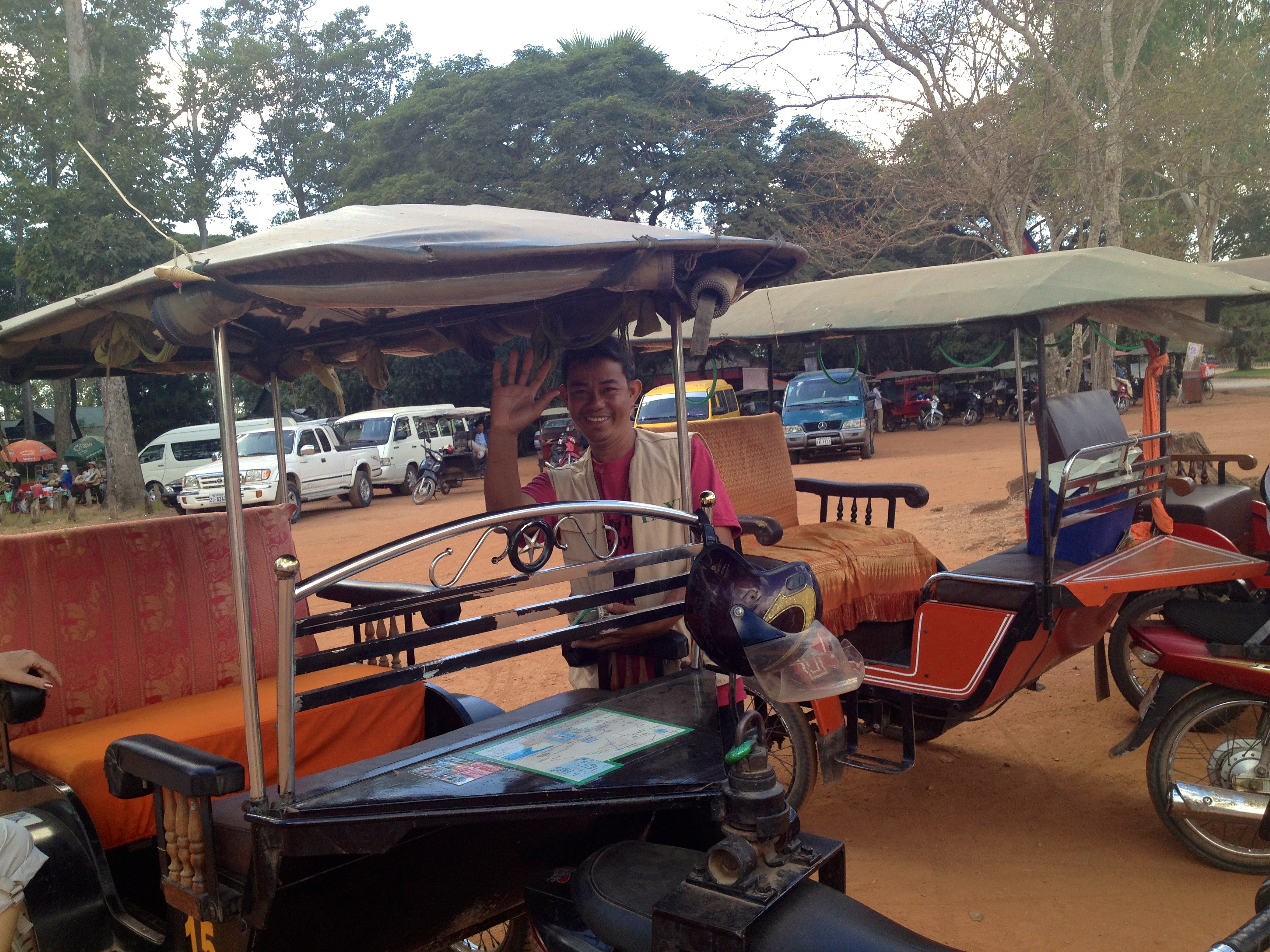 after a quick flight we arrive in siem reap in the late evening. the airport is lovely, full of sculptures and artwork and there is a feeling of calmness in the air. we are greeted by phirun, who is to be our tuk-tuk driver for the next few days. phirun has a wide, childlike smile and twinkling eyes. i have an immediate love for this man. as i ride along the long, dark roads of siem reap, taking in smells of grasses, wetlands, and blooming flowers and feeling the warmth and light humidity of the vanished day on my face, i find myself thinking: this is what fresh night air should smell and feel like. i feel pure contentment.