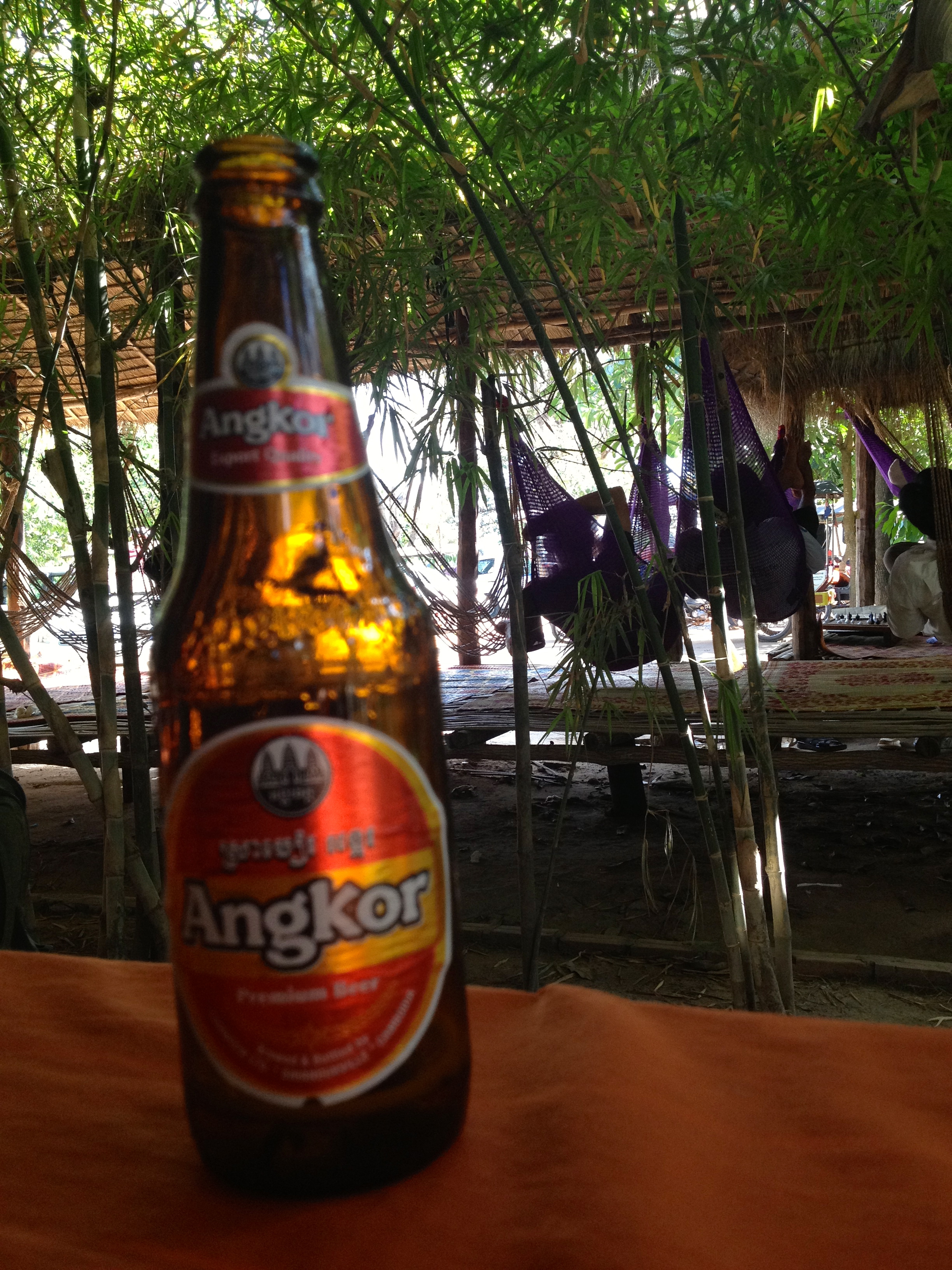 we depart the main temple to explore the town of angkor wat. we lunch at a small, local restaurant where we learn of the local dish, amuck. amuck is a coconut based soup of either fish or chicken that is cooked and served in a coconut. the restaurant is on a lake and our server says the fish is caught daily. the fish amuck is spectacular – reminiscent of curry with strong coconut flavor and large chunks of meaty white fish. my meal is accompanied with the local “angkor” beer and finished off with a nap in the hammock.