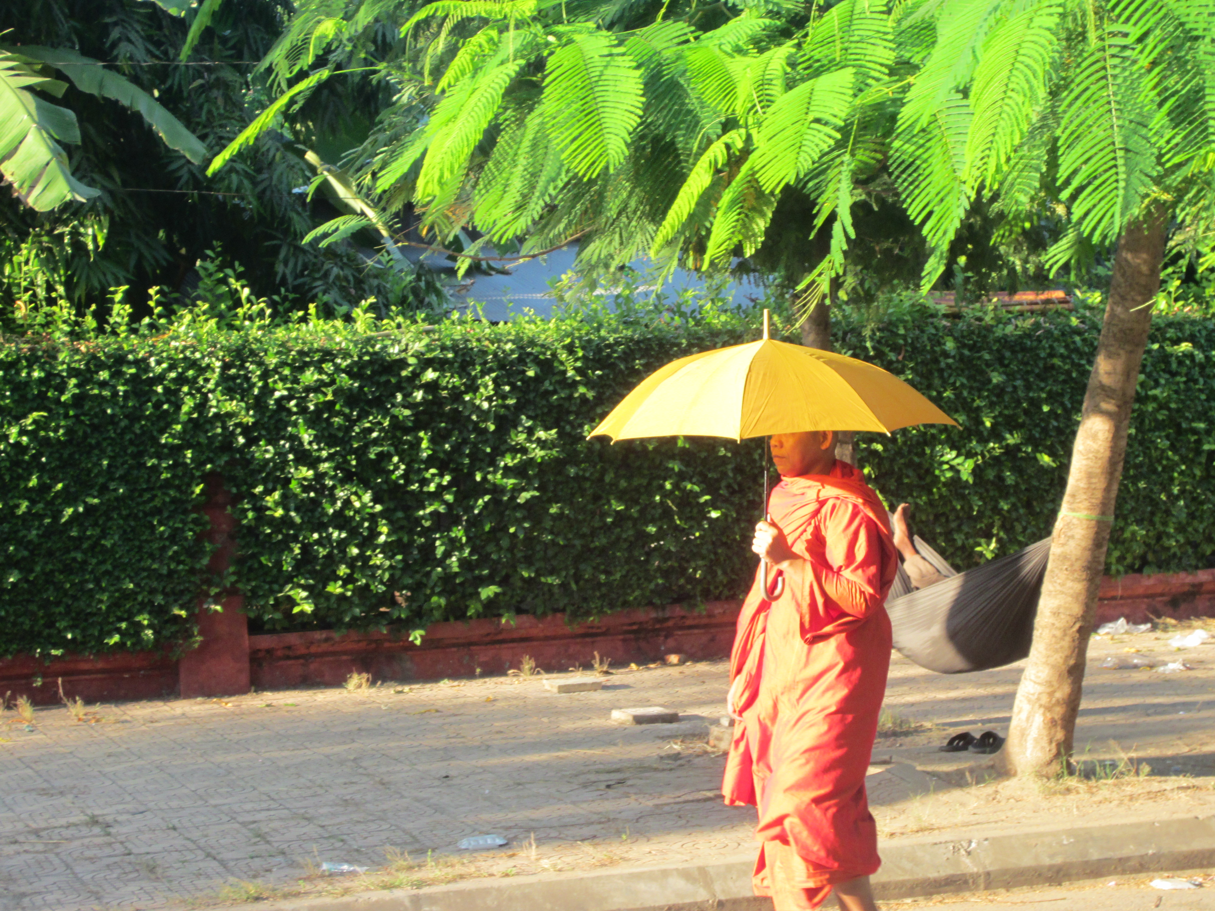 the last days of our holiday are spent in the capital city of phnom penh. we spend our time meandering the streets of this culturally rich city, resisting temptation to buy as we pass the amazing markets full of local art. We take a tuk-tuk to the russian market on the far end of town where i bargain for an amazing bag for less than $5 USD. there is a university for monks in the city center, consequently the streets are full of young monks dressed in their traditional orange robes. the combination of beautiful monks, the riverfront walkway and the plethora of parks and green spaces makes phnom penh a very beautiful city.