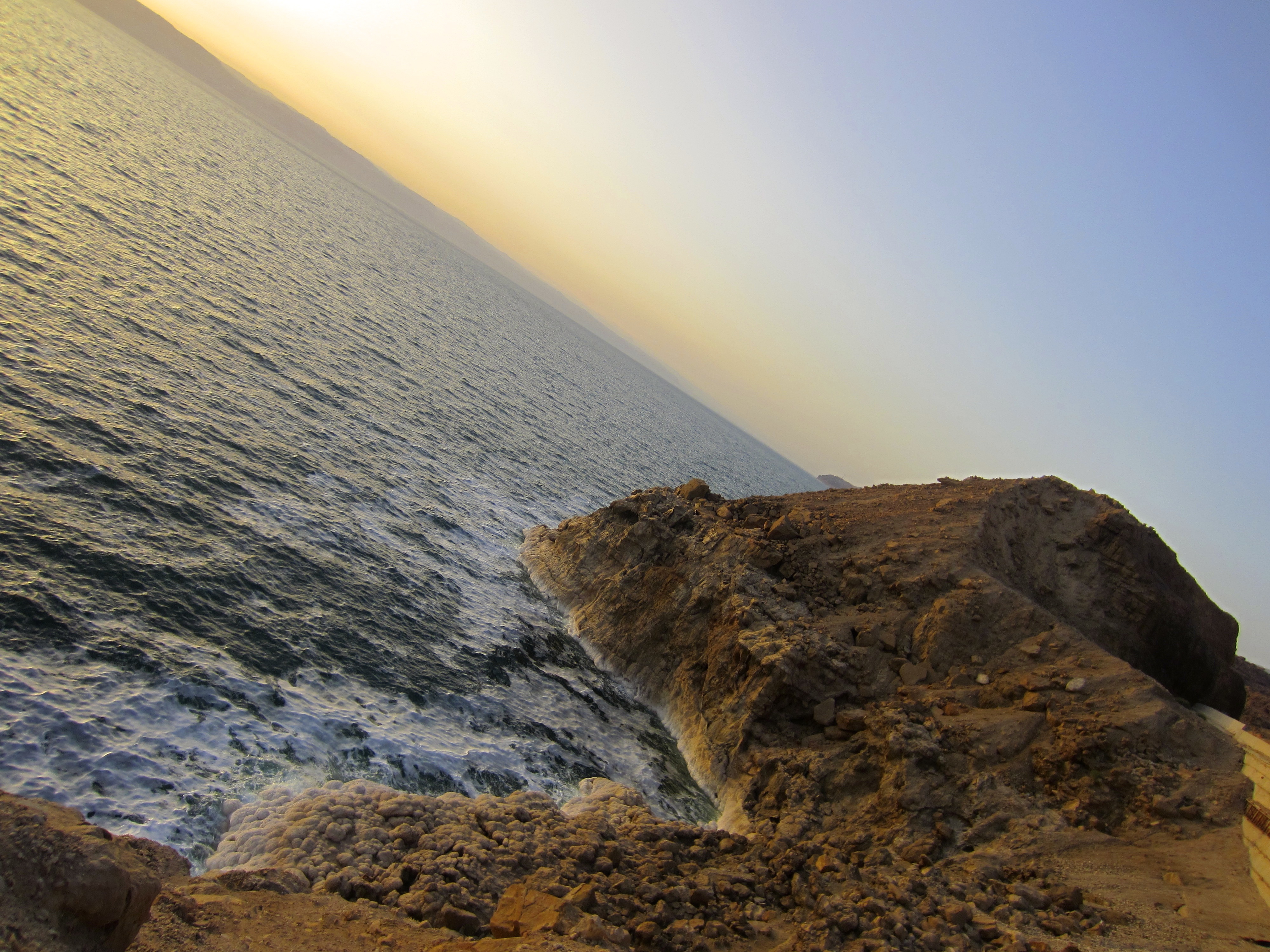 thrirty minutes later, kahlid picks us up at our hotel and we head out on the king’s highway towards the dead sea. kahlid shows us the sights along the way – the palace of the crusaders – a 2,300 year old building of white stone on a hill-top near the shobouk village – a village of rock homes deserted over 100 years ago, the danah reserve that sits above the danah valley where we look back over the 100+ kilometers towards petra from the cold, windy bluff. khalid tells us the current woes of his country with a deep sadness in his voice – jordan has the lowest water table per capita in the world and is now being inundated with refugees from syria, palestine, and other surrounding arab countries. unemployment is high and the cost of living in jordan is relatively expensive. the country tries to find new ways to create jobs and make money through mining for “potash” from the dead sea. potash is a white chalky, potassium-rich substance that comes from salt and is used for electric and batteries. this practice is quickly draining the dead sea, as over 20 meters has been lost over the past decades. when we reach the bluffs of the dead sea, i can see the losses that khalid speaks of as the water marks on the bluffs are much higher than where the salty waves crash into the rocks.