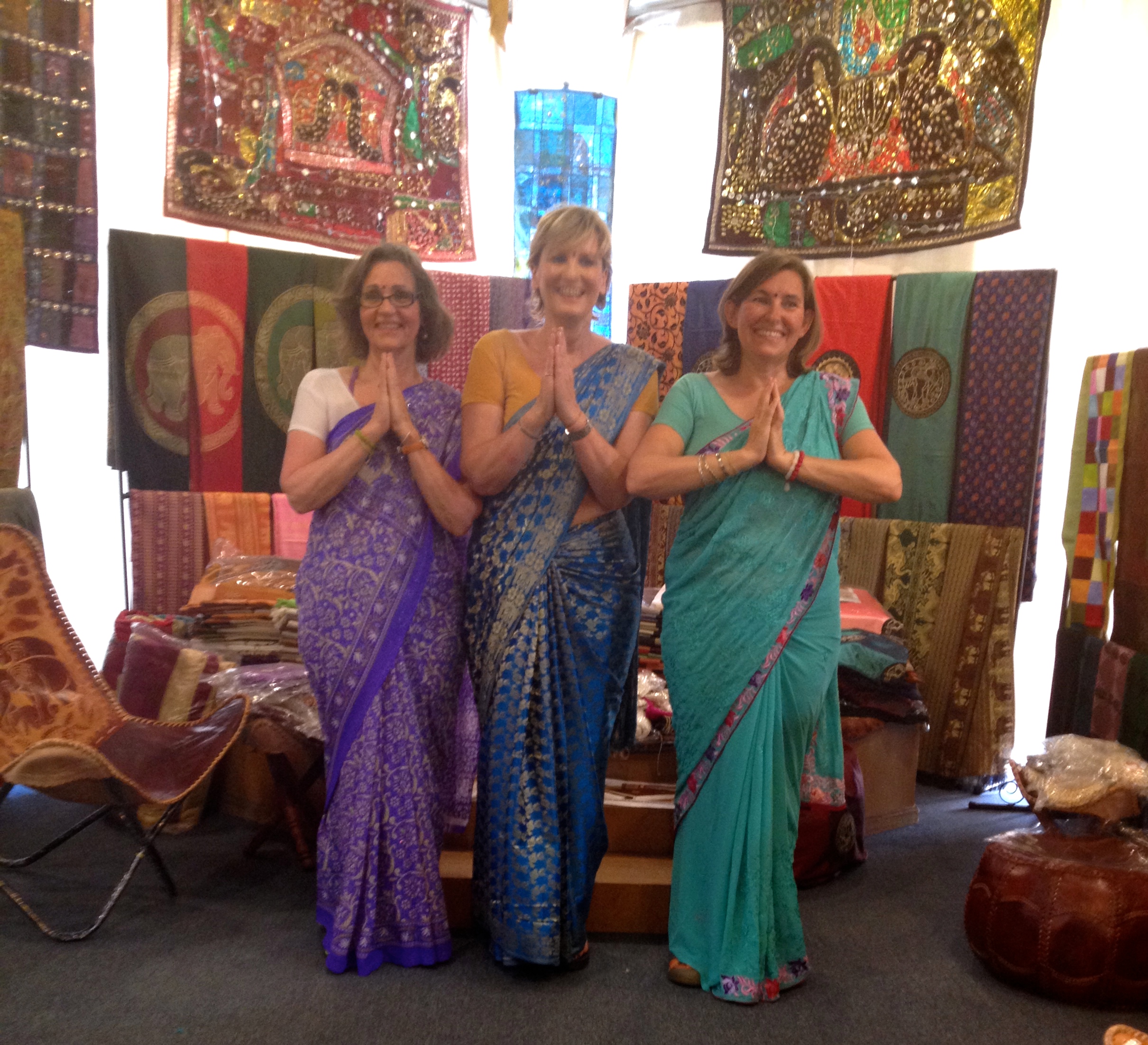 After the experience on the bus, and there being no train route where we want to go next, we opt for a driver for the slow trip to Adam’s Peak, the national park, and finally to the beaches in the south. Toga, our driver, picks us up, pills our packs into the trunk, and we are off – headed south. He takes us the long way, stopping at fascinating and scenic areas on the way to Adam’s Peak. Waterfalls, a small town that is referred to as “little England” (it really does look like England – even the misty, relatively chilly weather), tea farms, monkeys, and cool, old guest houses …. All things we would not have seen from the bus – Toga shows us along the way. It is on this route that we stop at a traditional silk shop where we meet several beautiful Hindu women who wrap us in their traditional garment – the sari. I discover this amazing garment is made of one single piece of silk cloth.