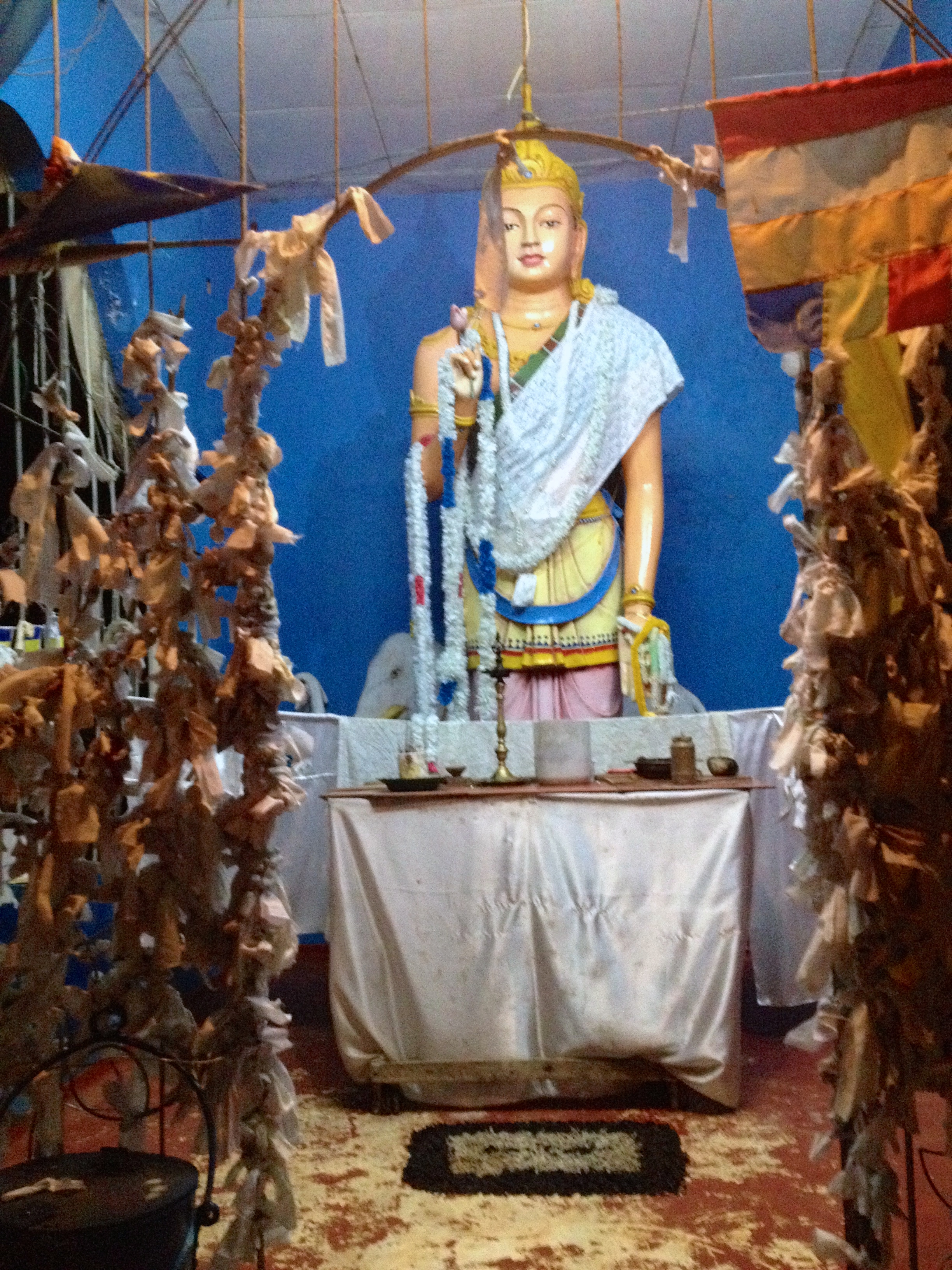 In the late afternoon we arrive at the Sri Maha Bodhi tree. Monkeys who hang out in giant prides around the gates guard the entrance to the park. Here we were asked to remove our shoes at the entrance; this is not unusual – but what is unusual is the size of this area. It is a small park of sorts, lined with hundreds of Bodhi trees, incense pots, enlightenment candles, stands selling flowers for offerings, prayer flags, beautiful areas to pray, even a small temple. However, the entire park area is made of sand. It is late afternoon and the sun has had all day to work its heat into the white sand. Our feet are almost immediately on fire! This tranquil place of worship is transformed into a scavenger hunt for shaded spots to rest our burning feet. We meet several Monks as we wander the park. They show us the proper way to de-stem our lotus and to light our enlightenment candle. We eventually make our way across the acres of hot, white sand, up the steps, and through the gates to the Sri Maha Bodhi. Here there are several prayer rooms where people leave offerings to show honor. I have bought a few beautiful lotus flowers to leave, after a short blessing; I take my leave of the prayer room and go to see the tree. It is beautiful, but surprisingly small for such an old tree. I find myself thinking, “I would not want to be responsible for caring for this ancient, sacred tree.”