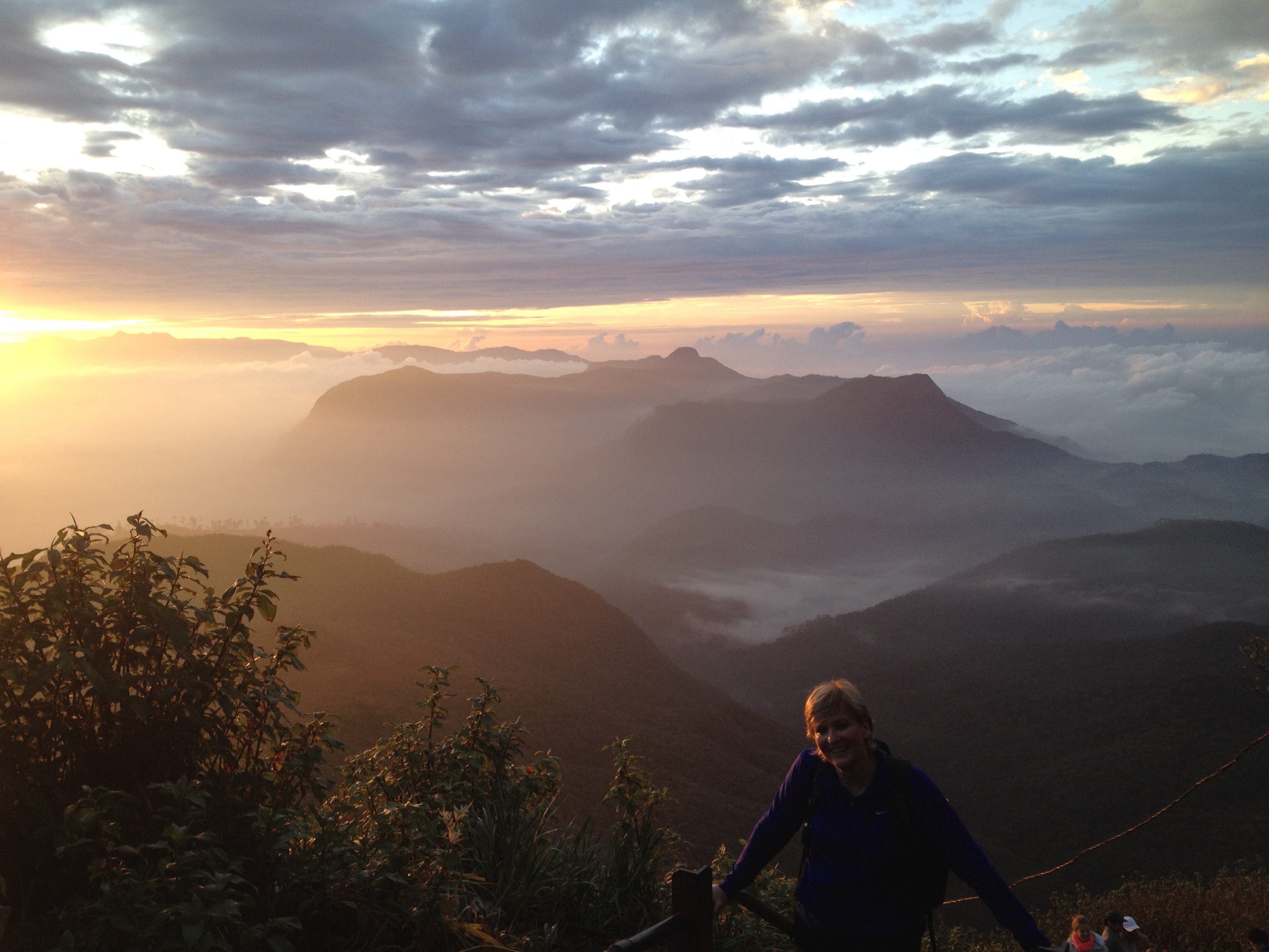 The tradition is to hike up the mountain at night to be at the summit for sunrise…. With this in mind, at 1:30 AM we begin our trek across town and up the mountain – climbing steep, wobbly, uneven steps made of rock and stone. Four hours and over 5,000 steps later, on aching, wobbly legs, we near the summit just as light begins to peek through the clouds. We quicken our pace to be at the top when the sun breaks through. The last 50 steps are pure torture fueled by total adrenaline. We stand on the steps at the base of the temple and watch the sun break through the clouds over the tops of surrounding mountains. Breathtaking does not begin to describe the beauty; terms such as ‘spiritual’ or ‘life changing’ cannot describe the feeling of accomplishment and self-love I experience in this moment. The colors I witness bursting through the clouds are of the earth and sun and heavens meeting at this one point and exploding with the light of new dawn. This new dawn has given me a fulfillment and sense of inner peace I have yet to experience. At the beginning of the trail a monk had given me a blessing of safe travels and placed a bracelet on my right wrist. On the summit, I find myself fingering this bracelet with a thoughtful mind. I am thinking of people and choices we each make in life and those who we chose to surround ourselves with… on this trip I am appreciating the goodness of people. The love and care in a stranger’s smile on the street, the helpfulness of the host in Kandy, the accommodating man at the hotel who allowed us to move to a room with a balcony, my friends – old and new – who are there for me when I need a laugh or a shoulder, my family – who is there with love and open arms no matter where I am or how often I come home. I am filled with gratitude for the people in my life.