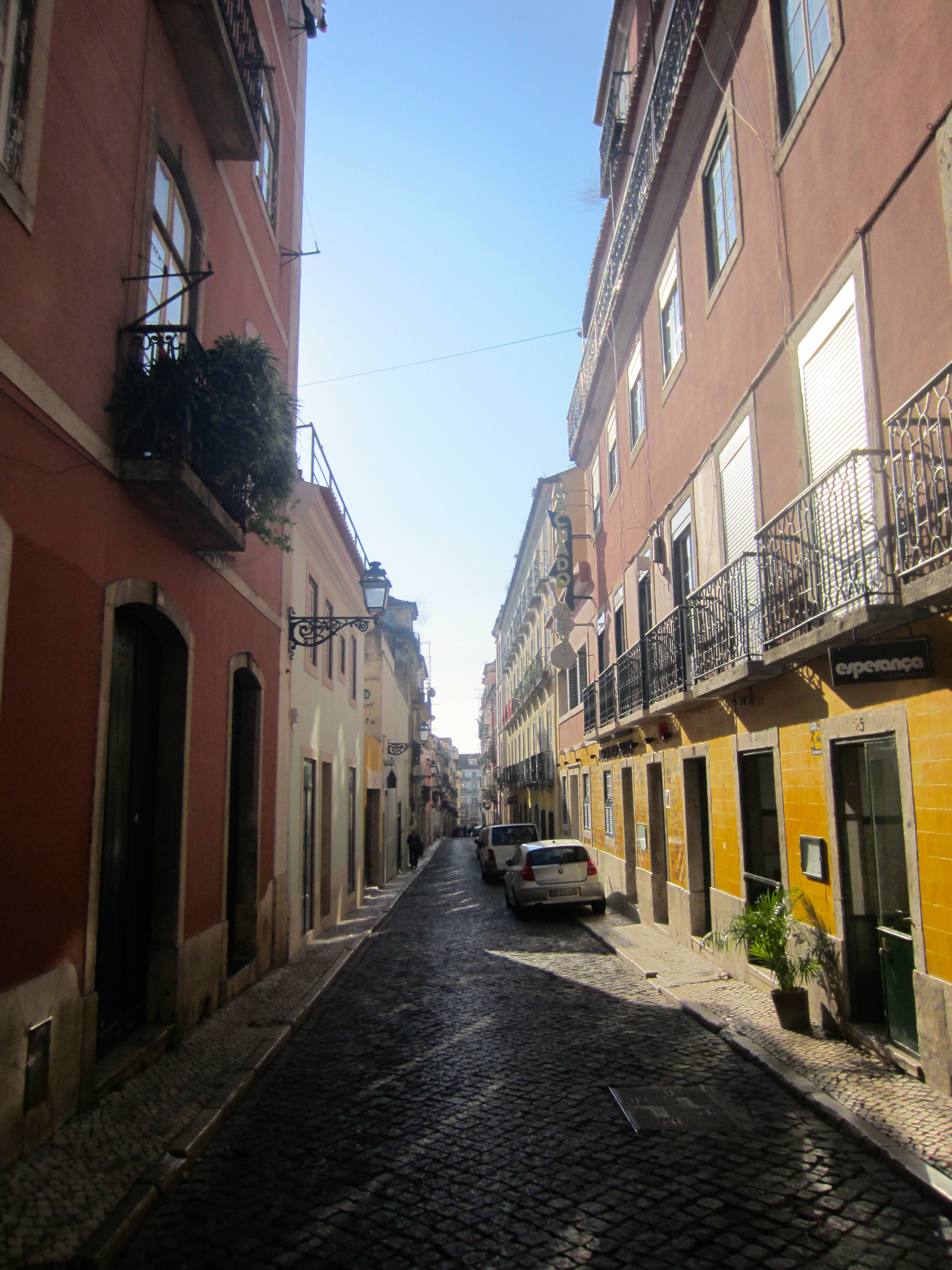 I catch a cab to the flat I have rented and it is well after dark when the taxi driver drops me at a corner saying he can’t get into the neighborhood where my flat is. At the bottom of a hill he tells me, through miming, to walk up a while then go right … lugging my bags and completely unsure of where to go, I begin the walk. After wandering a bit on the narrow cobblestone streets, I arrive at a corner that i recognize from the pictures and I hear my name from above. Joana is lovely.. she has lamps lit, windows open, a small space heater on, and candles burning. She gives me maps & suggestions of places I should see in Lisbon, as I have arrived with no information about the area…. I don’t even know the tipping etiquette of the Portuguese! (turns out it’s the average 10%)