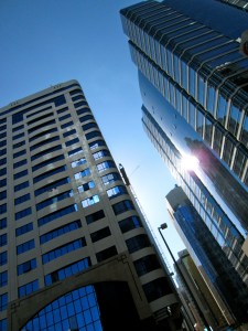 a doah sits amongst the skyscrapers